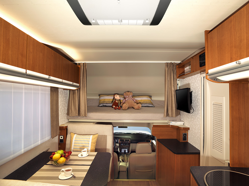 ??Sitting area for reading, for eating, sleeping, and entertainment.Operating area with cooker and basin, RV dedicated hood, special import RV 108Lfridge, extension of the special formula for outdoor gas cooker. Whole bathroomis equipped with electronically controlled toilet and black water tank pull-outplug, ventilation skylights. Shower area with a gas hot water systems, separateshower, ventilation skylights, imported shower system, waterproof bathroom. Wetand dry separation, isolation privacy original design.